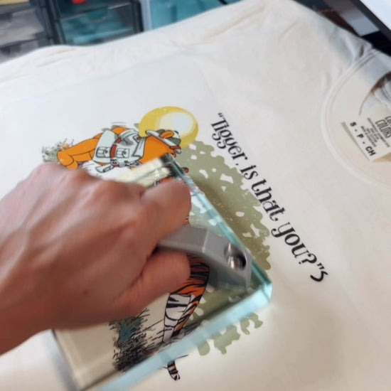 Inspired by the heartwarming and playful moments of the Hundred Acre Wood, our "Tigger Is That You?" design captures the lovable chaos of Pooh mistaking his own reflection for his bouncy friend! This nostalgic and whimsical print is perfect for those who cherish the timeless magic of Winnie the Pooh.